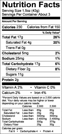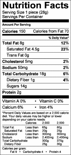 INGREDIENTS: Apples, corn syrup solids, water, granulated sugar, evaporated milk (milk, dipotassium phosphate, carrageenan, Vitamin D), cream powder (cream, lecithin, tocopherols), butter (cream, salt), partially hydrogenated vegetable oil (cottonseed, soybean), salt, vanillin - an artificial flavor. CONTAINS MILK, SOY. FACILITY PROCESSES PEANUTS AND TREE NUTS.