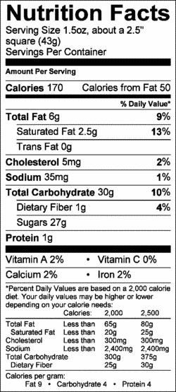 INGREDIENTS: Apples, semi-sweet chocolate (sugar, chocolate liquor processed with alkali, cocoa butter, milk fat, soy lecithin - an emulsifier, vanillin - an artificial flavor, natural flavors), corn syrup solids, water, granulated sugar, evaporated milk (milk, dipotassium phosphate, carrageenan, Vitamin D), cream powder (cream, lecithin, tocopherols), butter (cream, salt), partially hydrogenated vegetable oil (cottonseed, soybean), salt, vanillin. CONTAINS MILK, SOY. FACILITY PROCESSES PEANUTS AND TREE NUTS.